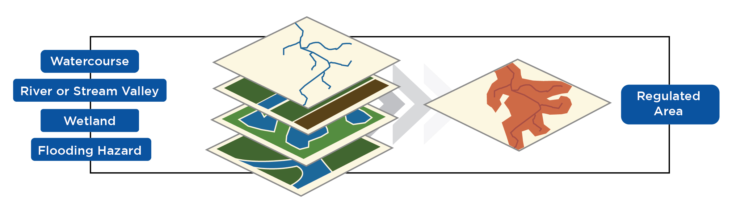 UTRCA staff determine the location and boundaries of individual hazards, such as flooding or river and stream valleys, through extensive data collection, statistical analysis, modelling, and various mapping techniques. Throughout this process, staff follow technical guidelines prepared by the Ministry of Natural Resources and Conservation Ontario. Using a Geographic Information System (GIS), the map layers showing each hazard are overlain and an allowance is added to produce the regulated area. For more information, view the Regulated Area Map video.